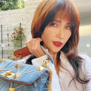 「今日はデニムに赤系をつけたくなる日でした」とつづり、白のシャツにデニムのパンツ&バッグ、赤いサンダル姿の写真をアップ。「目元は@esteelauderピュアカラーエンヴィー08 リップ 字が小さくて読めない!@diorbeautyフォーエバーリキッド、これは確かに959!!コンシーラー そして @bulgari のミッツァの様なチーフを今日はベルトにしています」と紹介した。