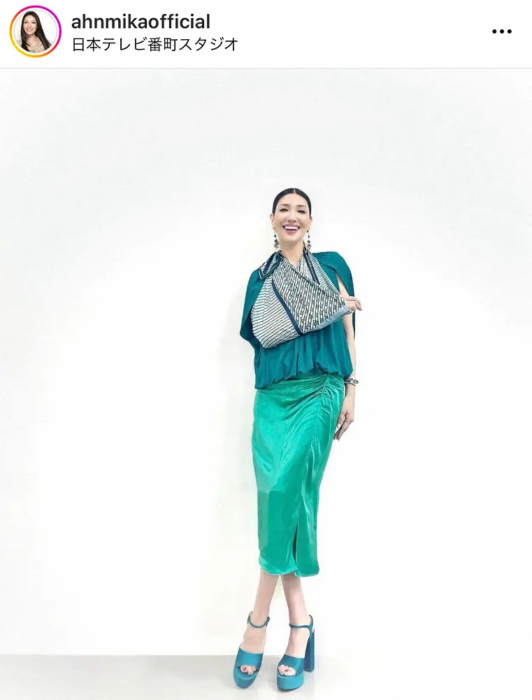 再手術の影響でギプスを着用しており、この日はイタリアのブランド「MARELLA」の鮮やかなスカーフで右手を固定した写真を投稿。全身をグリーンでまとめたコーディネートに「オールグリーンのギブス隠しコーデ」と紹介。「ギブスカバーで、顔まわりに華やかな柄のスカーフが来るから、ギブスタイムも楽しんでおりました!実際はもう取れてるのですが、しばらくはギブス時代の収録ものが放送されることもありますが、ご心配なく」と呼びかけた。