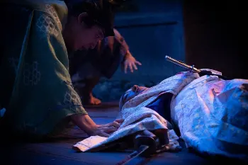 大河ドラマ「鎌倉殿の13人」第33話。源頼家の亡骸に慟哭する北条泰時(坂口健太郎・左)(C)NHK