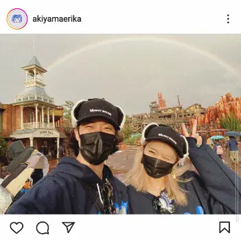 秋山衣梨佳 夫・「霜降り明星」粗品と虹をバックにペアルック披露 「最高に可愛い」「癒されました」の声
