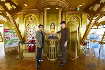 一方の坂口は「新世界に来るのは初めて」といい、通天閣への潜入に意気揚々。2人は5階に上がり、名物・ビリケン像の足の裏をなでて、同作の大ヒットを祈願…といきたいところだったが、コロナ感染対策のため、足には触れずに、念を送った。