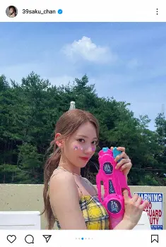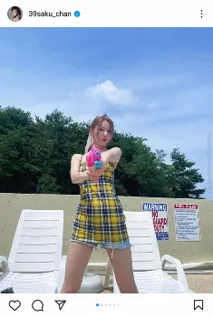 「今年の夏はとても面白かった…まだ行かないで…」と韓国語で記すと、黄色のチェックのキャミソールにデニムのショートパンツ姿でウオーターガンを構えるショットをアップ。胸から上のショットや上半身の横向きのショットなども投稿した。