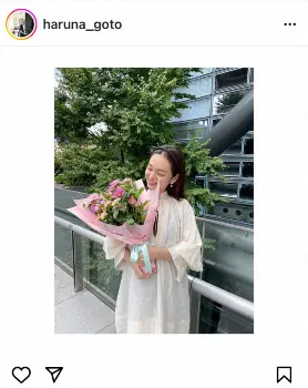 花束を持つ写真とともに「明日から出社することがしばらくなくなってしまうという寂しさ、でももうすぐで我が子に会えるという楽しみ、いまいろんな感情がこみあげています」とも。「お休みの間に新しい価値観や考え方を身につけ、まっさらな気持ちでまた職場に戻れたらと思います」と記した。