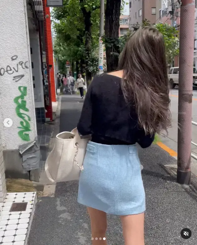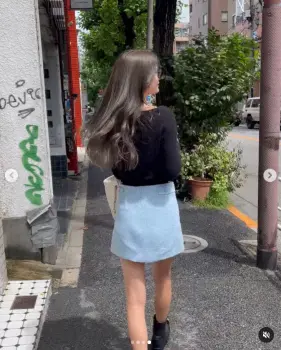 「NEW HAIR 旅で抜け切ったカラーをすこし秋っぽくグレーを足しました」とつづり、黒のトップス、水色のミニスカートで髪に手を当てている写真や動画をアップした。