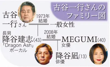 古谷さんの長男で「Dragon Ash」の降谷建志も悲嘆に暮れた。古谷さんが亡くなった3日後の先月26日に音楽フェスに出演予定だったが、25日に体調不良のため辞退すると発表。音楽関係者は「かなり参っているようだった」と話した。