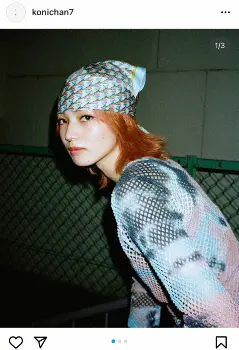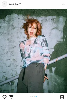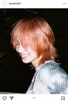 小松は「New hair pink」とつづり、温かみのあるオレンジカラーのウルフカット姿を公開。ボーイッシュなストリートファッションを着こなし、これまでの雰囲気をガラリと変えた。