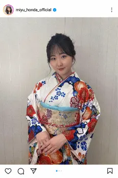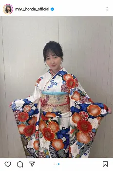 本田はこの日行われた「京都コレクションvol.5」(ロームシアター京都)にゲスト出演。「#京都コレクション」と記すと、白地に赤や青の花柄があしらわれた艶やかな着物姿をアップした。