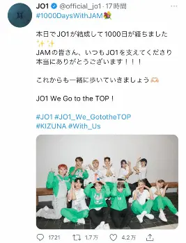 JO1は「本日でJO1が結成して1000日が経ちました」と報告。「JAMの皆さん、いつもJO1を支えてくださり 本当にありがとうございます!!! これからも一緒に歩いていきましょう JO1 We Go to the TOP!」と、ファンに感謝を伝えた。