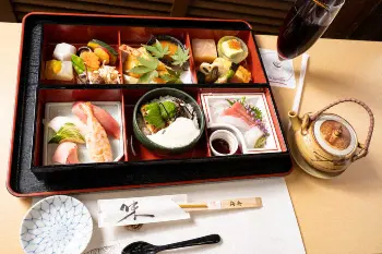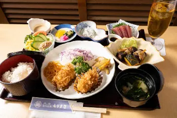 藤井聡太王位は「勝負メシ!藤吉郎風コロッケランチ」、豊島将之九段は「海舟御前」を注文した。