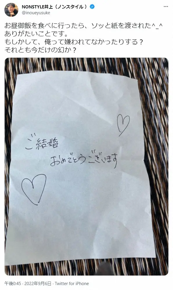 井上裕介公式ツイッター(@inoueyusuke)から 井上裕介 「どんだけパン入ってんねん」新妻の謎行動にツッコミ ほのぼ… ギャラリーで見る この記事のフォト 2022年09月06日の画像一覧 もっと見る 2022年09月06日の画像をもっと見る