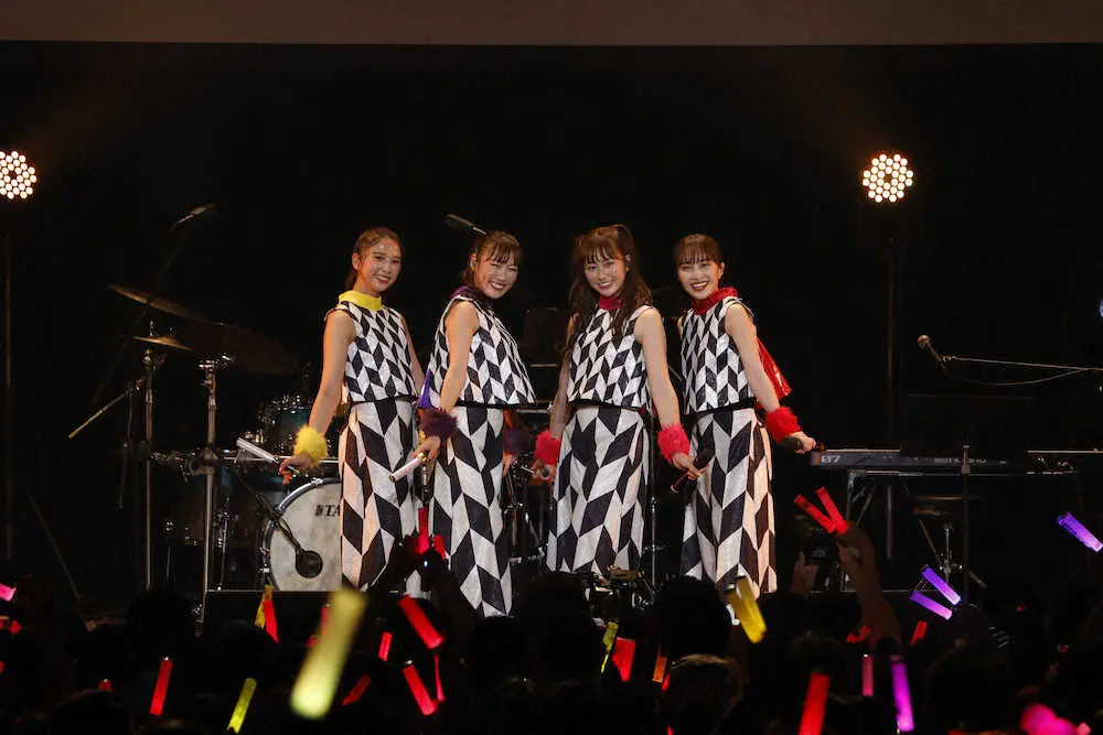 「黒フェス2022 ~白黒歌合戦~」で歌唱する「ももいろクローバーZ」の(左から)玉井詩織、高城れに、佐々木彩夏、百田夏菜子