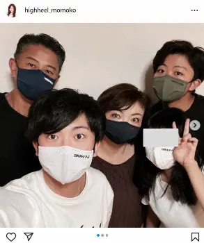 モモコは「長男ジンが東京からのお土産に家族色違いのマスクを持って帰ってきましたぁ 久々に5人でパチリ」とつづり、お揃いのマスクをつけた家族5人の写真をアップ。「マスクの色を決めたのは、いつもの家族ルールで また、YouTubeでやりますね」と、家族団らんの様子をコメントした。