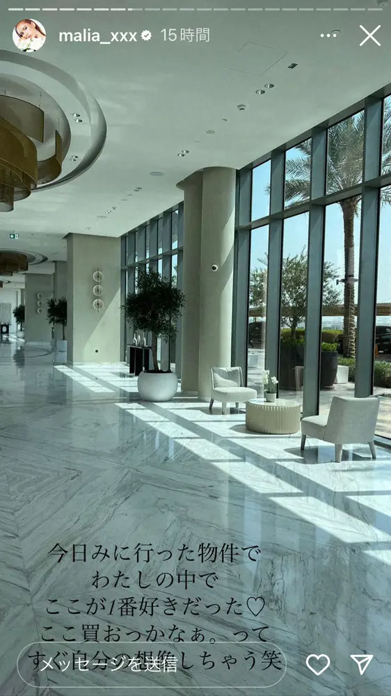 MALIA.公式インスタグラム(@malia_xxx)から MALIA. ドバイ移住から2週間 新しい仕事で「毎日のように物件巡り」報告… ギャラリーで見る この記事のフォト 2022年09月08日の画像一覧 もっと見る 2022年09月08日の画像をもっと見る