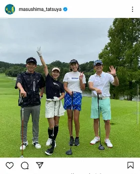 増嶋竜也氏 妻の潮田玲子、古田敦也氏、狩野舞子さんと豪華ゴルフ4ショット披露に「凄いメンバー」の声