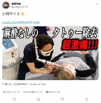 ゴマキ弟・後藤祐樹、5回目タトゥー除去手術は麻酔なし「めちゃくちゃ痛かった…」「覚悟持って入れて」