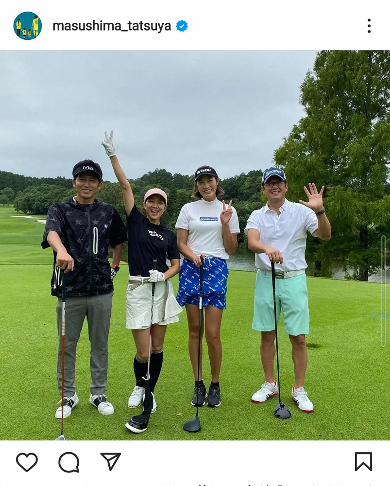 増嶋竜也氏 妻の潮田玲子、古田敦也氏、狩野舞子さんと豪華ゴルフ4ショット披露に「凄いメンバー」の声