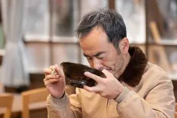 午後1時半、男性客・藤田(古舘)が入ってくる。注文は「沖縄そばセット(イカスミジューシー)(600円)」。雑誌を読みながら、黙々と食べ、完食した。帰り際、ボソっと「あ、うまかったよ」。暢子たちは安堵した。すると、3人客と2人客が入ってきた。