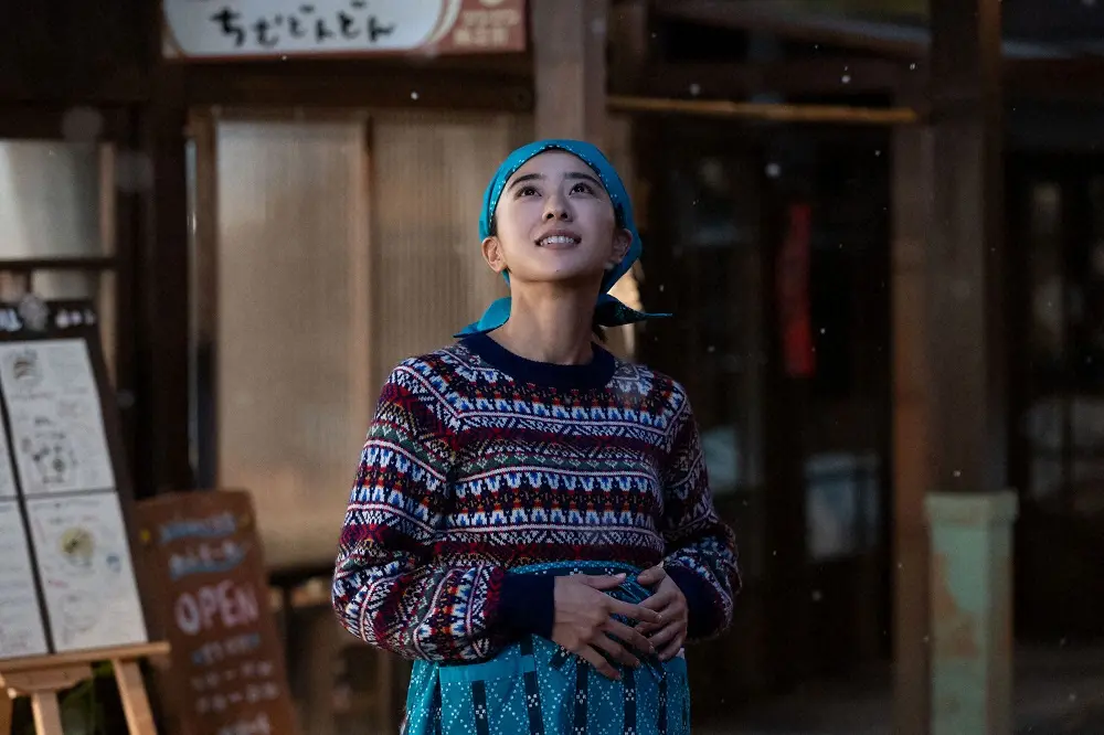 「故郷・やんばるを離れて、8度目の冬。暢子はおなかの子と一緒に夢を1つ叶えました」(語りジョン・カビラ)