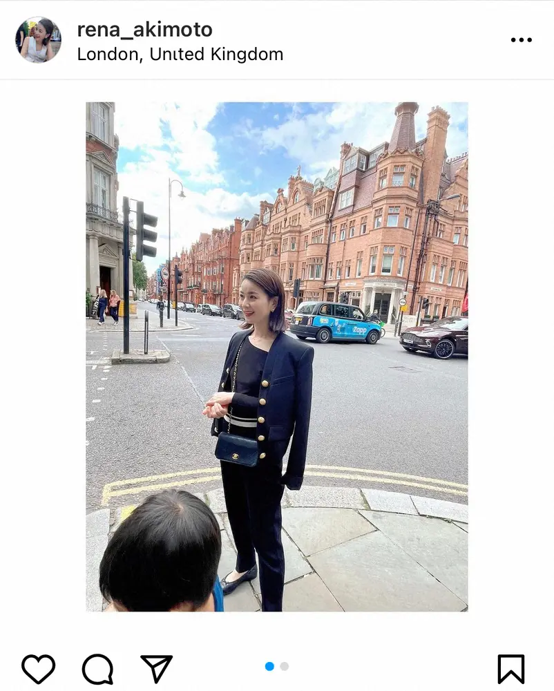 この日は「一気に秋になったロンドン。秋冬ものはほぼ船便なので手持ちがなくなってきた、、、まだかな?」とつづり、小物まで黒で統一された上品な秋コーデでロンドンの街を散策する様子を添えた。