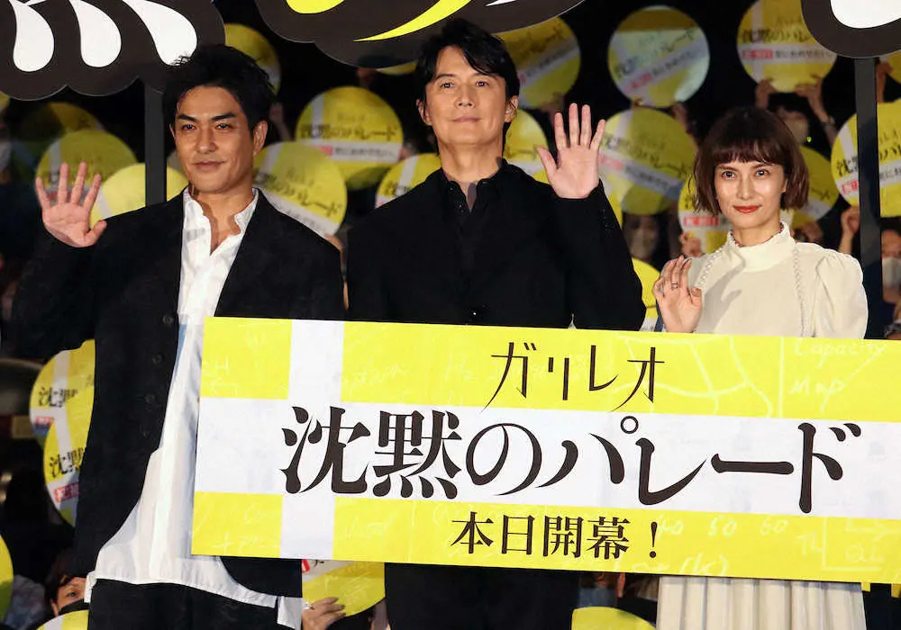 歌手で俳優の福山雅治(53)が16日、都内で映画「沈黙のパレード」(監督西谷弘)の初日舞台あいさつを、共演の柴咲コウ(41)、北村一輝(53)と行った。
