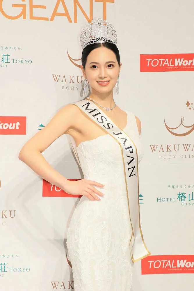 航空会社のキャビンアテンダントなどを経て、現在はウェブ系の広告代理店に勤務。美容系の会社を立ち上げる目標があるといい「30歳までに起業します」と高らかに宣言した。同時開催された「ミスター・ジャパン」には俳優の石見海人(28)が選ばれ「舞台の仕事が多かったのですが、これからは映像にも挑戦したい」とした。