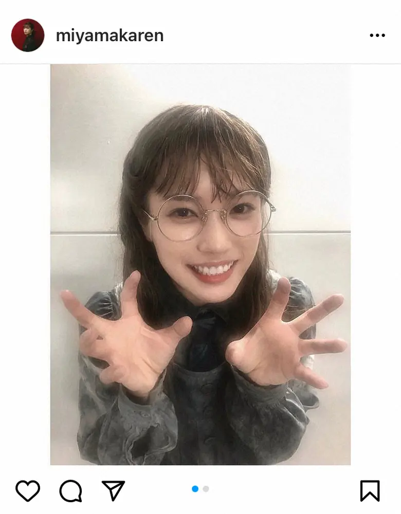 この投稿に、ファンからは「めちゃめちゃかわいいし、めちゃめちゃキレイ」「あいも変わらず美しい」「穏やかなお人柄とお茶目なポーズ!」「眼鏡 眼鏡」などのコメントが寄せられている。