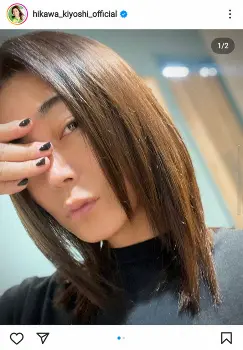 歌手の氷川きよし(45)が18日、自身のインスタグラムを更新。もの憂げな表情とアヒル口をし、下したストレートの髪に黒で斜めフレンチのネイルを披露した。