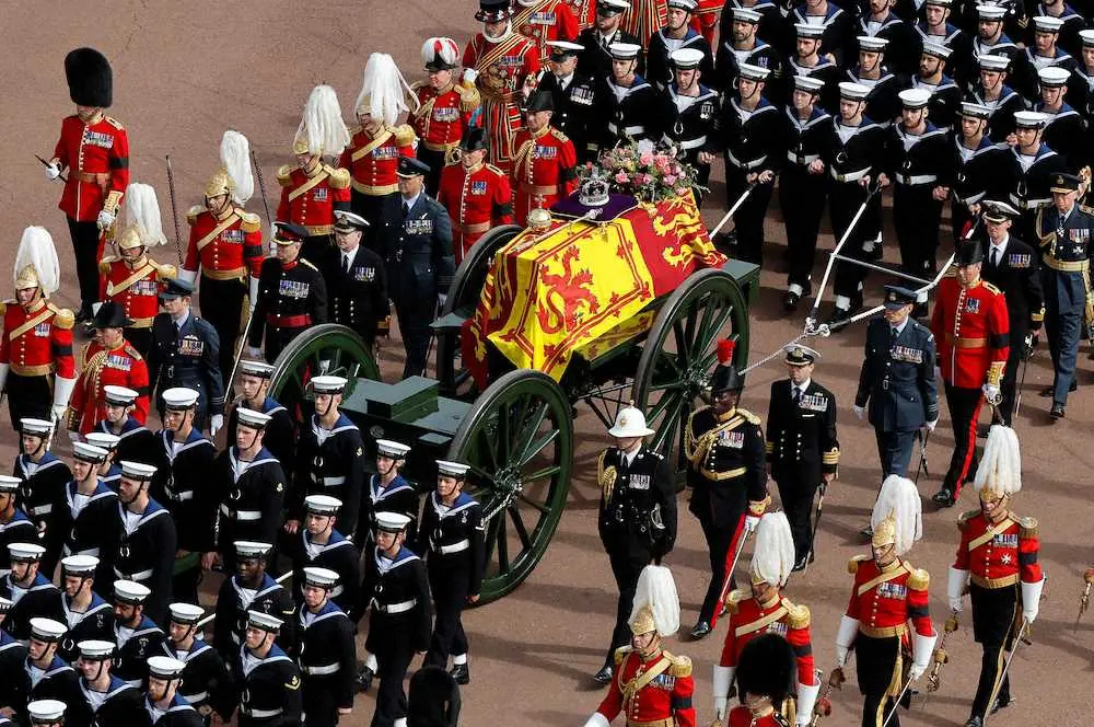 国葬後、ウェストミンスター寺院から運び出されるエリザベス英女王のひつぎ(AP) Photo by AP 毬谷友子 エリザベス女王の国葬で思い「これが、真の国葬というものなの… ギャラリーで見る この記事のフォト 2022年09月19日の画像一覧 もっと見る 2022年09月19日の画像をもっと見る