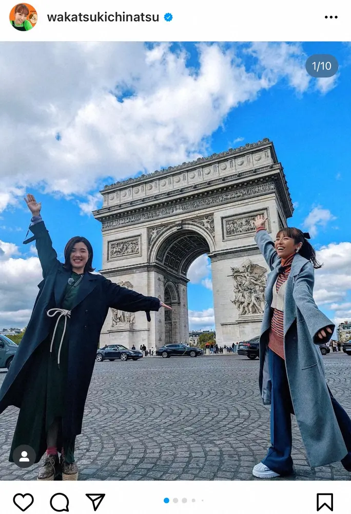 タレントの若槻千夏(38)が19日、自身のインスタグラムを更新。お笑いトリオ「3時のヒロイン」の福田麻貴(33)とフランス・パリに滞在していたことを明かした。