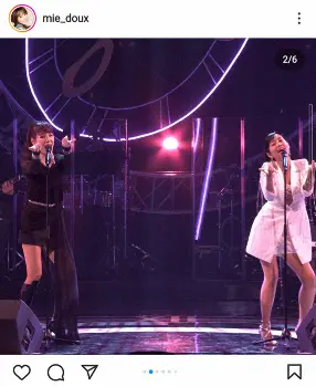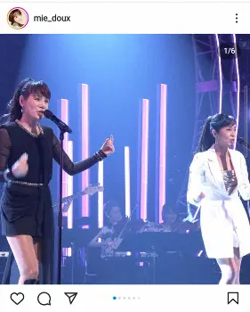 未唯mieは、24日放送のNHK-BSプレミアム「歌える!J-POP黄金のヒットパレード決定版」に出演することを報告。「『渚のシンドバッド』のコラボは、早見優ちゃんです」とし「優ちゃんとは88'「Cat's eye キャッツ・アイ」で姉妹を演じてから、ずっと妹のように感じていました。いくつになっても可愛い 優ちゃんは、今回も『渚~』をとっても素敵に歌って踊ってくれました」とつづり、2人もポニーテールして未唯mieは黒、早見は白のミニの衣装で歌う姿などを披露した。