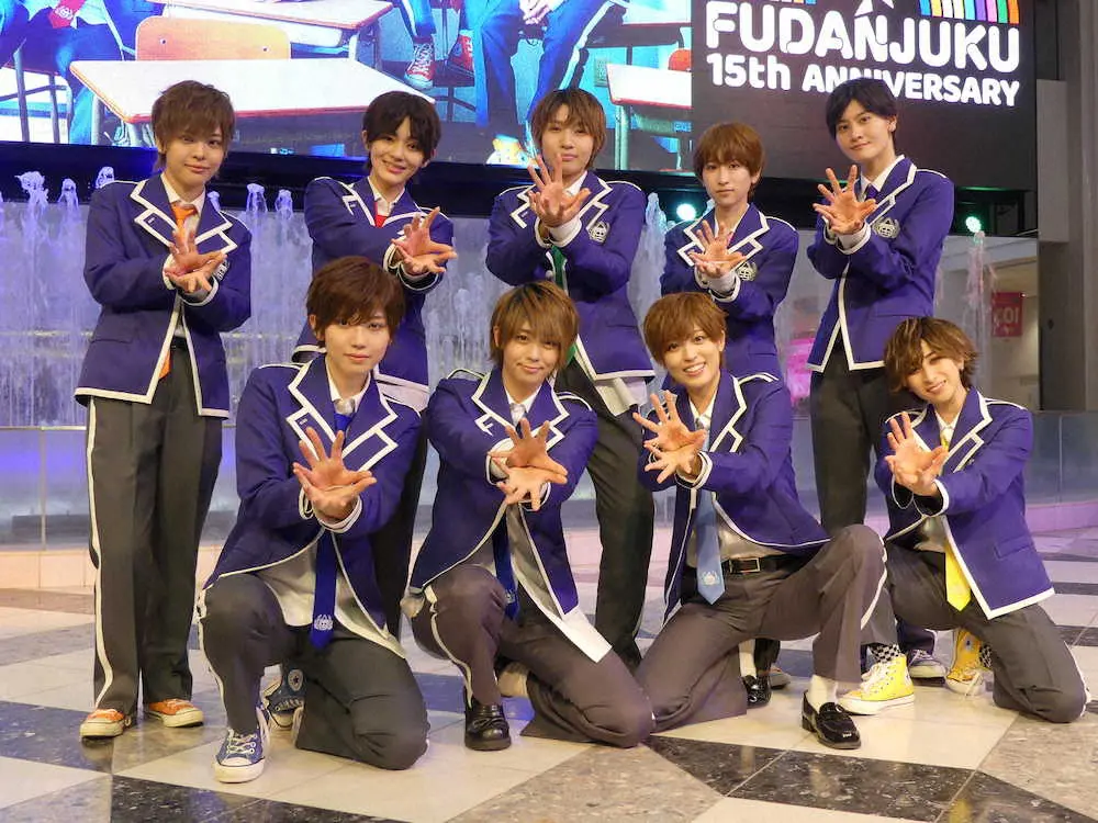 この日は「15周年PR大使」を務めるレジェンドメンバーの青明寺浦正(17年卒業)と、愛刃健水(昨年卒業)も登場。愛の告白をする「イケメントークバトル」を繰り広げた。愛刃は「青春や幸せを感じさせてもらえる場所だと思った」と久々のファンの歓声を喜んだ。