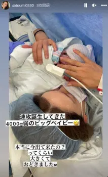 里海は21日、ストーリーズで「10日も早く生まれそうです」と予定日よりも早い出産になりそうだと報告。一夜明けたこの日、「速攻誕生してきた4000g弱のビッグベイビー」と無事に出産したと投稿。「本当に今出て来たの?ってくらい大きくておどろきましたw」とつづった。