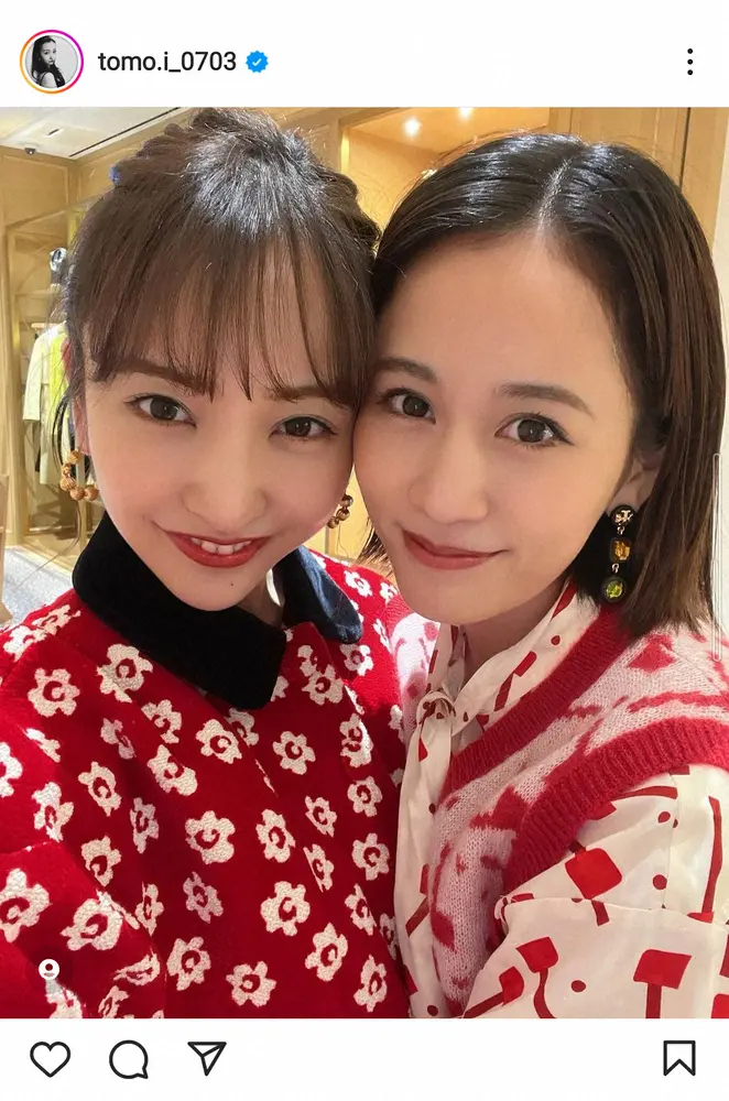 元AKB48で女優、歌手の板野友美(31)が22日、自身のインスタグラムを更新。元AKB48で女優の前田敦子(31)とのアップの2ショットを披露した。