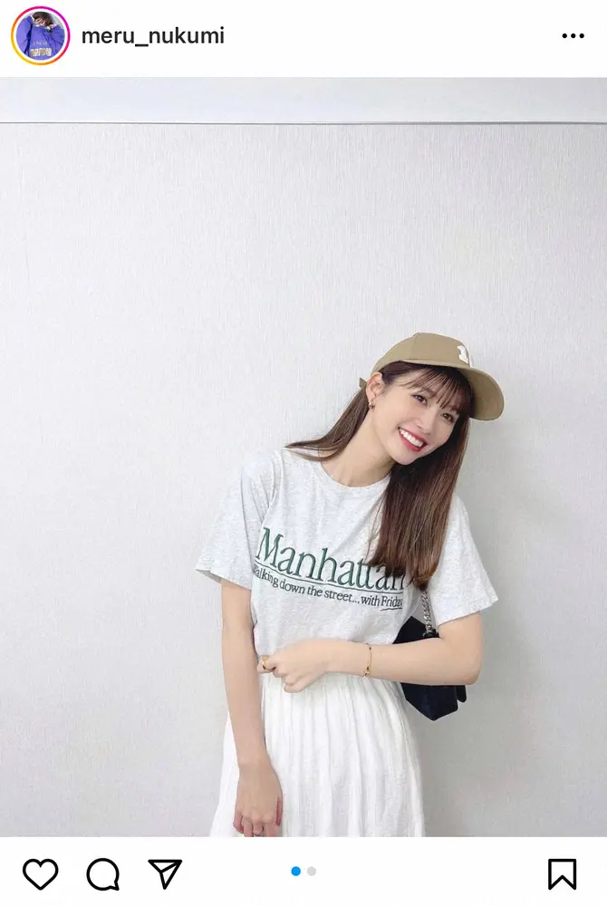 「袖なし季節ももうそろそろ終わりかな~」としつつ、キャップを合わせた涼しげなショットを公開。フォロワーからは「かわいすぎ」「私もその作戦使おうかなっ」「かわいいいいいいいいいい」「可愛くて素敵です」「キャップも良き~」「めるの私服大好き」「なんか爽やか」「めっちゃ似合う!」との声が寄せられた。