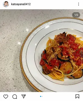 加藤は「家で和食ばかりですが加トちゃんに美味しいパスタが食べたいと言われてパスタ作りにハマっております」とし、「一番のお気に入りは秋の味覚『さんまの缶詰め』を使ったパスタです。これが唸るほどの美味さです!しかも簡単!口にいれて目を閉じると銀座のイタリアンか!つっこみたくなる(自分で言うな」と自賛。