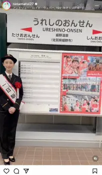 松井は「本日開業の西九州新幹線!嬉野温泉駅にて1日駅長を務めさせていただきました!!こんな大役は一生に一度かもしれません。ありがたい限りです」と興奮気味にコメント。「そして、開業おめでとうございます」と祝福の言葉を加えた。
