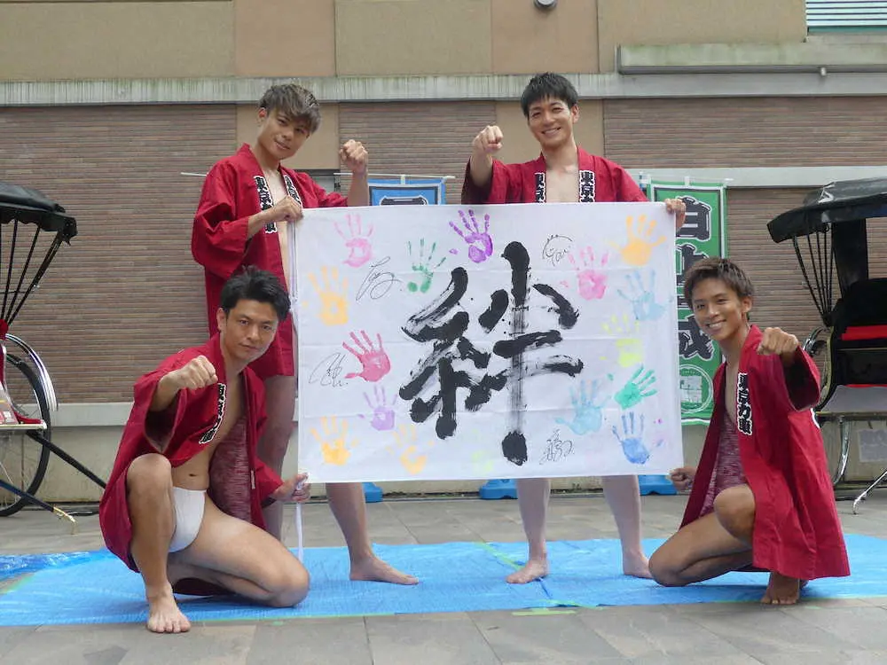 東京力車(前列左から)石橋拓也、白上一成、(後列左から)田井裕一、渡邉善央