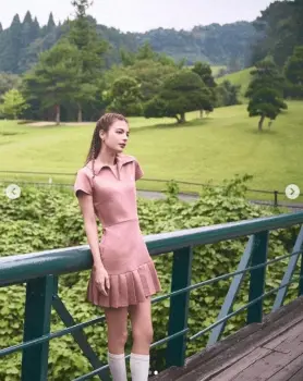 マギー ピンクのミニスカ・ゴルフウエア姿公開に「スタイルも良くて完璧だね」「似合うし可愛い」