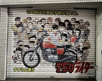 東京都大田区のJR蒲田駅西口から延びる商店街のすずらん通りは“750ライダーストリート”として知られる。近隣に石井さんのアトリエがある縁で、十数店舗のシャッターにキャラクターの特大イラストが描かれている。もちろん営業中は見ることはできず、閉店する夜や週末が見頃となる。飲食店の店主は「遠方からファンの方が足を運んでくれたこともあった。残念です」と石井氏の死去を悼んだ。