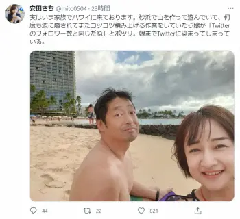 団長安田 家族でハワイへ 妻・安田さちが夫婦写真公開 「娘たちもビックリするほど仲良し」