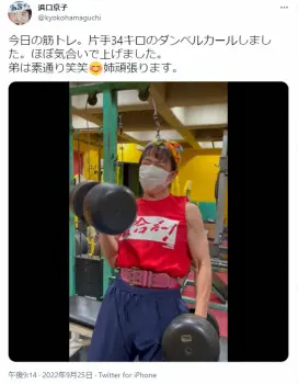 女子レスリング・アテネ、北京五輪銅メダリストの浜口京子(44)が26日までに自身のツイッターを更新。筋トレしている動画を公開し、ファンから驚きの声が挙がった。