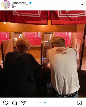ショウタロウは、ラーメンの絵文字でコメントし、日本に帰国したときのスナップショットを投稿。人気ラーメンチェーン「一蘭」のラーメンと自撮りした写真や、メンバーのソンチャンとカウンターで並んで食べる後ろ姿をアップした。