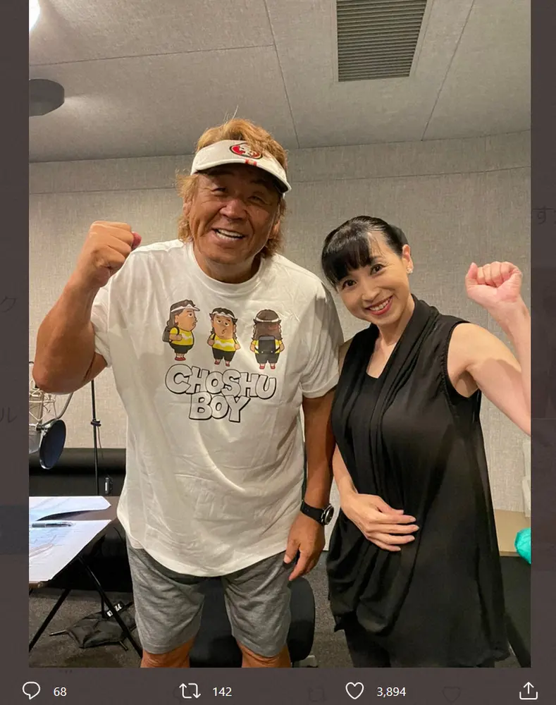 元プロレスラーの長州力(70)が27日、自身のツイッターを更新。元アイドルでタレントの西村知美(51)と「親子」ショットを披露した。