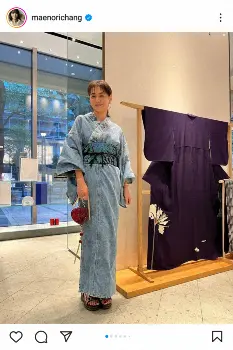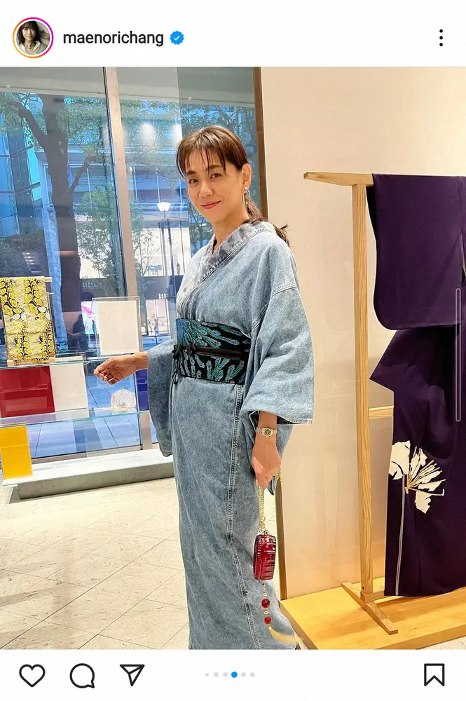 モデルの前田典子(56)が28日、自身のインスタグラムを更新。デニムの着物姿を披露した。