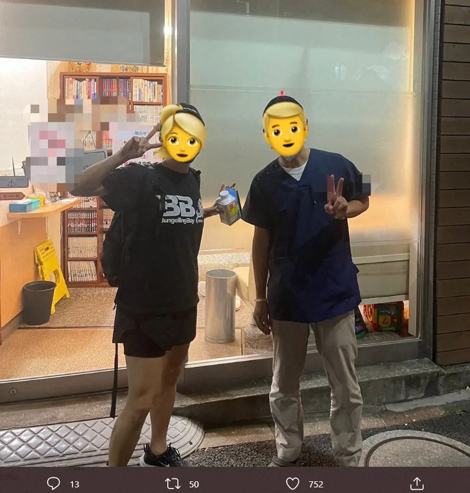 ナヲは「BACK DROP BOMBのマスオさんが『ナヲちゃんちょっとこれ見てw』って見せてくれたやつ」として、男性と女性が写った写真をアップ。「私が顔隠しのスタンプつけただけでNO加工なんだけど お分かりいただけたであろうか…」と、赤い人型のような物体が男性の頭の上に写り込んでいることを指摘した。