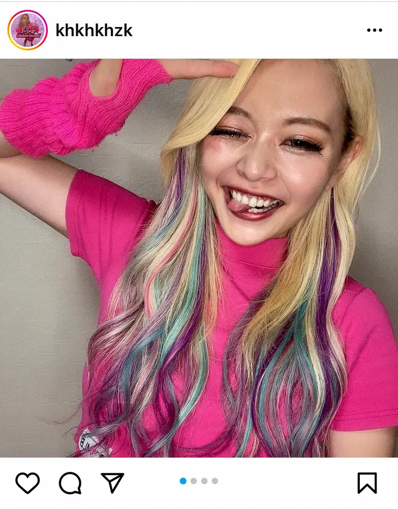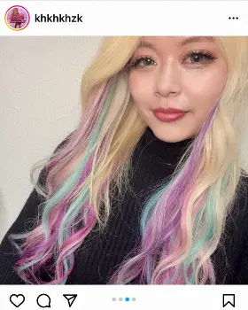 お笑いコンビ「エルフ」の荒川(26)が28日、自身のインスタグラムを更新。カラフルなインナーカラーを入れたど派手な新ヘアスタイルを披露した。