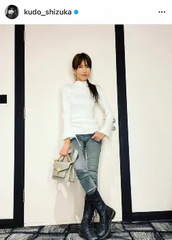 工藤静香 「クタクタ過ぎる」黒ブーツ×白ハイネックの秋コーデ披露に「うっとり」「別人みたい」の声