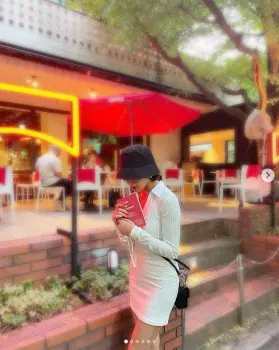 「@camper_japan×@kihachi_official 30日までやってるコラボカフェでランチしたよ スペインにいる気分だったな~行ったことないけど パエリアめがった!マヨルカ島いつか行きたいです」などと、東京・青山に期間限定でオープンしている、スペイン・マヨルカ島生まれのシューズブランド「CAMPER(カンペール)」の日本初となるコラボカフェ「Cafe de Camper」を訪れたことを報告。白いタイトなミニワンピース姿の写真などをアップした。