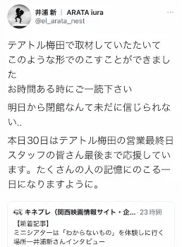 【画像・写真】さようならテアトル梅田 ついに閉館の日…井浦新も感謝のツイート「未だに信じられない…。ありがとう」