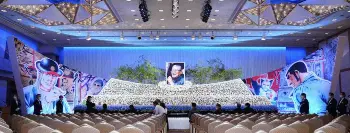 祭壇は、さいとうさんが好きだった野の花をイメージ。白と青の花約5500本で飾られ、都会が舞台の物語を数多く描いた作家人生と対照的に自然への憧れを持ち続けた、生前の思いが反映された。両脇には「ゴルゴ13」「鬼平犯科帳」などのイラストが飾られた。